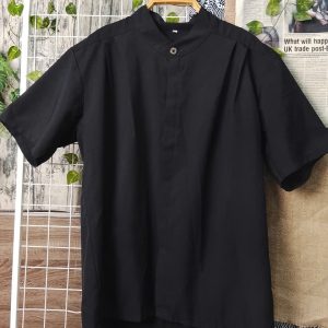 Product: Black Stand Collar Short Sleeve Shirt – Size L