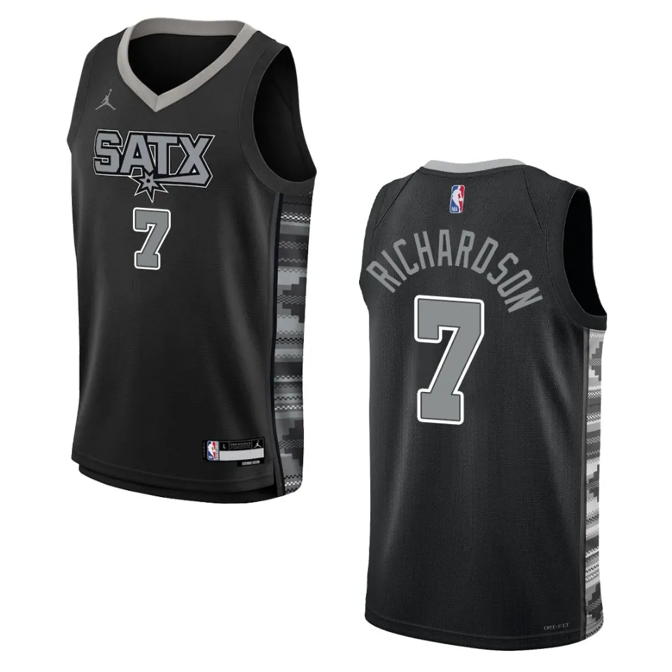 No matter where you are, you need a perfect NBA gear that can help you better show your support! This 2022-23 San Antonio Spurs Youth Statement Edition Josh Richardson Black Jersey will be your best companion for the next big game! Featuring classic NBA graphics, this sweet gear will keep you comfortable and full of team spirit.