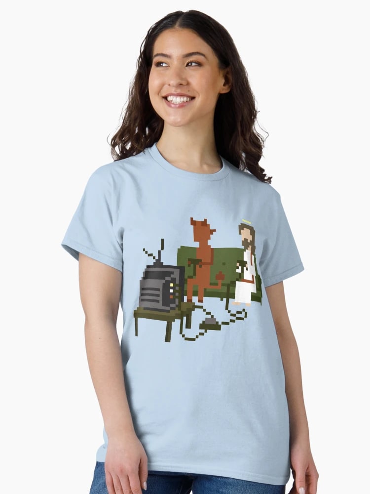 Sản phẩm: Jesus And Devil Playing Video Games Pixel Art Classic T-Shirt